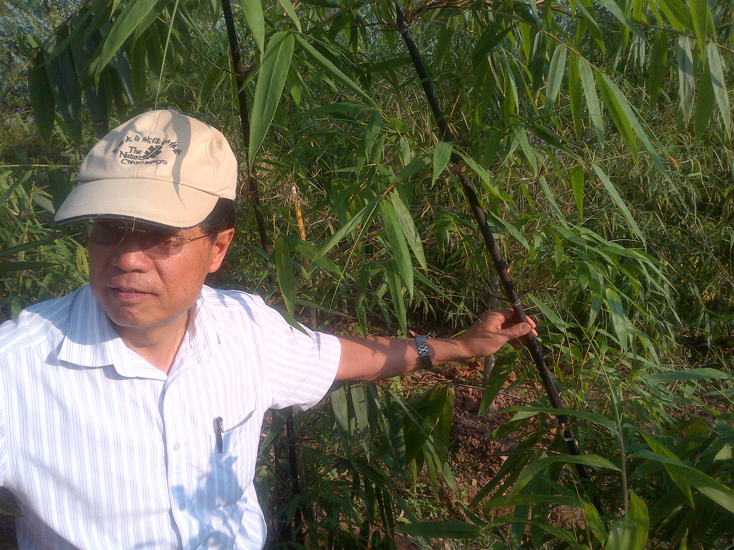 We saw a valley that is being afforested with bamboo, with the intention to create an eco-tourism site, including restaurants, bamboo rafts on a lake and craft shops. We also visited several nurseries, where he showed me new species and interesting developments. In one of the nurseries, we saw black bamboo, which originates from Vietnam. The stems really are black, and it not due to age or disease. There is a lot of variety in the bamboo world!